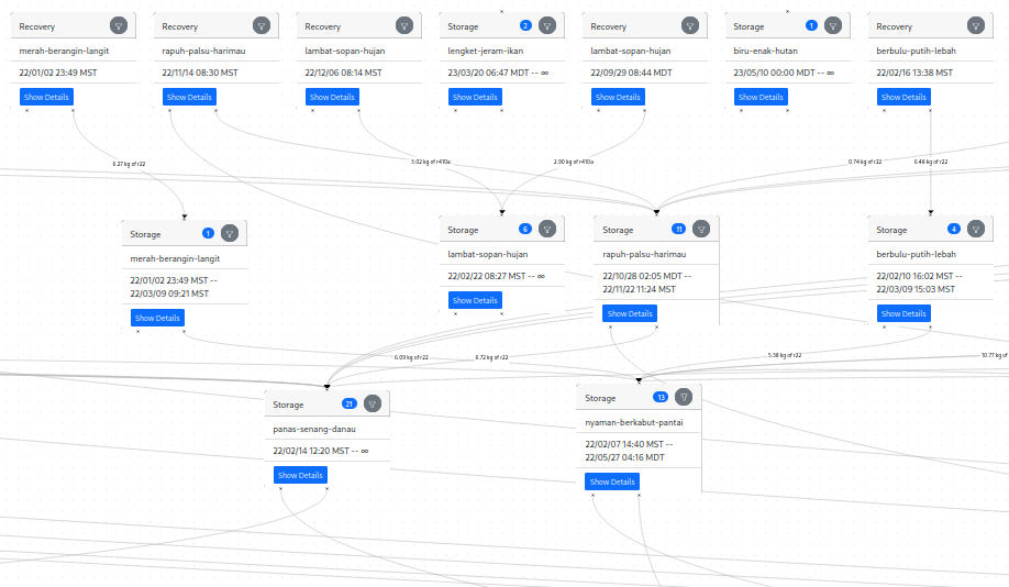 When you buy a carbon credit from Recoolit, you are buying a specific quantity of a specific gas that was destroyed. In order to show you all of the data that went into your destruction, we need to trace the path of the gas from the recovery to the destruction. We call this data structure the "transfer graph", and it is the core of our transparency system.